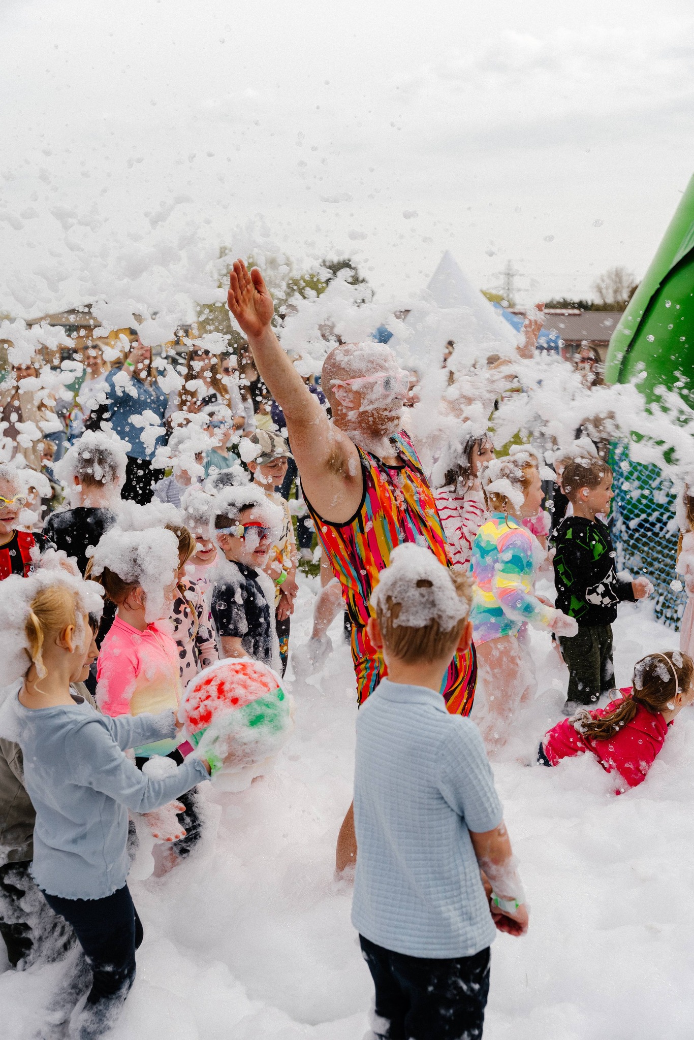 Get ready to watch the excitement develop as a parent or organiser, or join in? As the kids, friends, and family get covered in an impressive amount of foam, creating a really playful and exhilarating atmosphere. Until you've tried it you won't know the sensory delight it provides. Your party will be the Event of the year, and the talk of the playground.