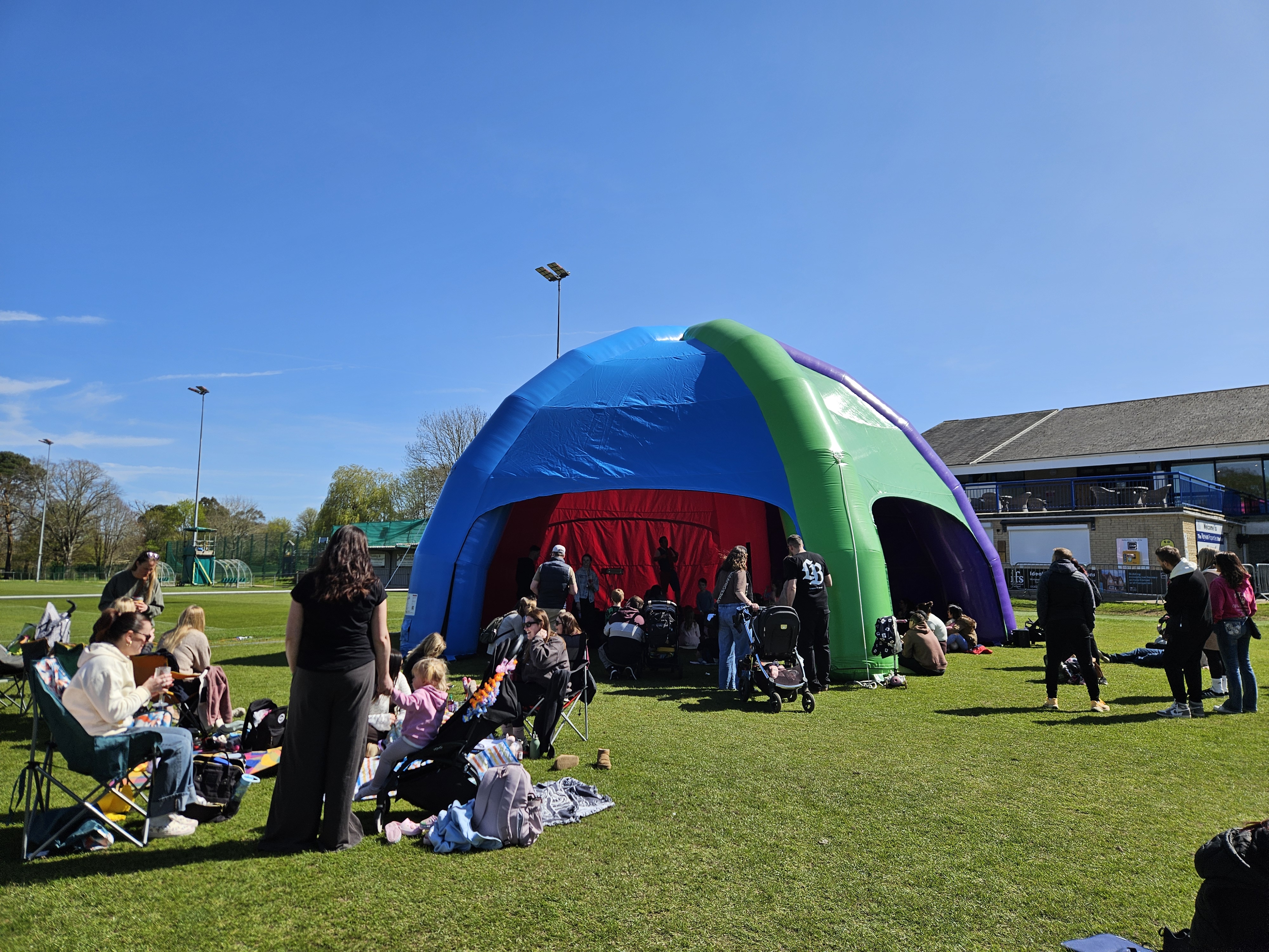 Create your own Event or Party Venue in a field, or add that WOW Centrepiece with our Huge 12m Diameter Inflatable Festival Event Dome Hire. This is a unique and different option compared to a boring white marquee, stretch tent or gazebo hire. Perfect for school events, festivals, fun days, big parties and more. Covering Dorset and Hampshire, or further afield if required. Are you holding a circus or festival theme event? Do you need an entertainment focus point? We can even add a stage, sound system, microphones, entertainment including Magicians, DJ, Disco, Dancing, Bubble Shows and more.
